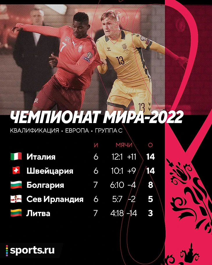 12 ноября: Северная Ирландия – Литва, Италия – Швейцария