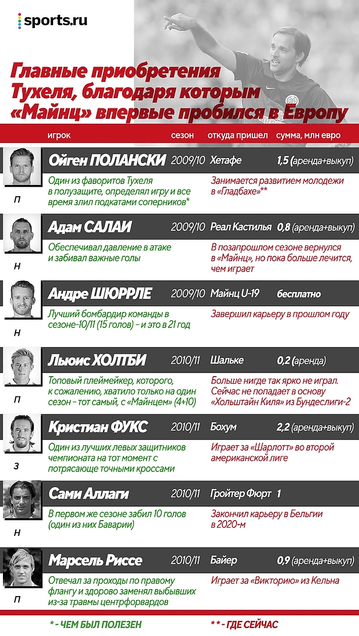 Этот год – самый успешный в карьере Томаса Тухеля. В «Челси» он выиграл Лигу чемпионов и сейчас лидирует в АПЛ, а летом получил награду лучшему тренеру Европы по итогам прошлого сезона. Томас доказал, что он может работать с большими проектами, но свой первый шедевр Тухель создал в скромном «Майнце» 11 лет назад. Благодаря ему клуб без денег и звезд на второй год после выхода в Бундеслигу начал крушить фаворитов, обновлять клубные рекорды и в итоге пробился в еврокубки. Давайте разбираться, как Тухелю это удалось: