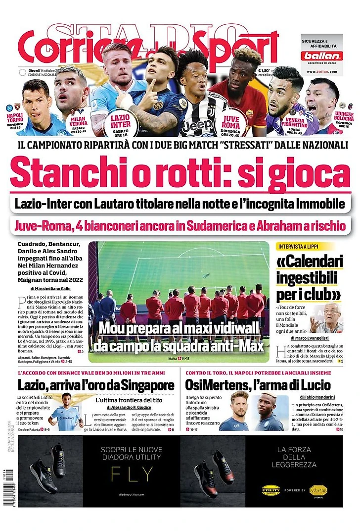 Уставшие или поломанные: играют. Заголовки Gazzetta, TuttoSport и Corriere за 14 октября