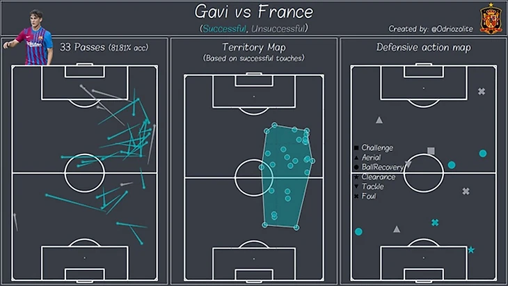 После неожиданного и яркого дебюта за взрослую команду клуба, Гави был вознаграждён вызовом сразу в главную сборную. Все мы знаем, что Луис Энрике обожает академию «Барсы», и здесь он не прошёл мимо. Можно сколько угодно выкладывать цитаты после его двух матчей против Италии и Франции. Это было невероятно. Он не боится никого. Ему все равно, против кого играть. Он бил Вератти, валил Погба, защищал Йереми Пино. Иногда он выпадал из игры. В его возрасте это нормально. Однако только я думал, где же этот парень? Как он тут же летел в подкате под Жоржиньо. Каждое его действие не было поспешным. Мяч в его ногах, будто бы игрушка на нитке. Он контролирует его настолько изящно, что его небольшая косолапость даже кажется чем-то магическим. Его невысокий рост не кажется таким, когда он заваливает на газон мощных дядек давно успевших понюхавших пороху.