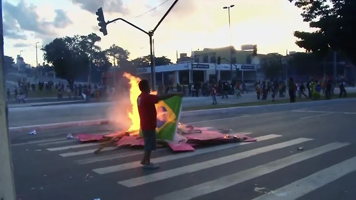 «Люди протестовали против Кубка мира, – объясняет закадр. – Против слишком дорогих цен, экономического кризиса, коррупции. Из-за этих факторов многие бразильцы восприняли чемпионат мира негативно».