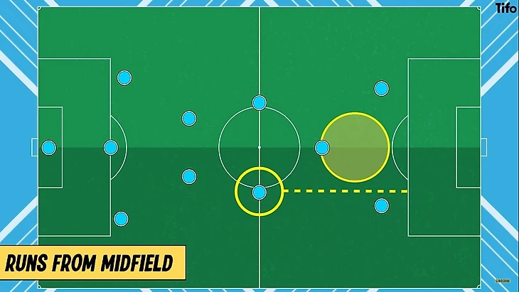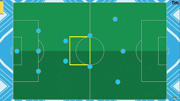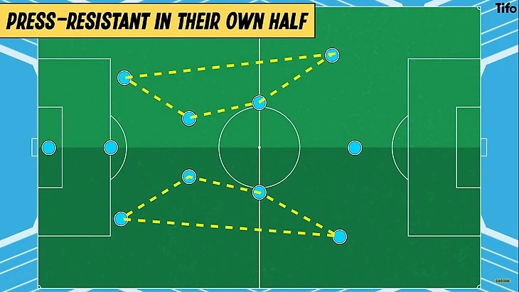 Как и в случае с командами под руководством Пепа Гвардиолы, которые подобно выглядят в последней трети - основной целью является обеспечение пространства для передач и свободы в полуфлангах.
