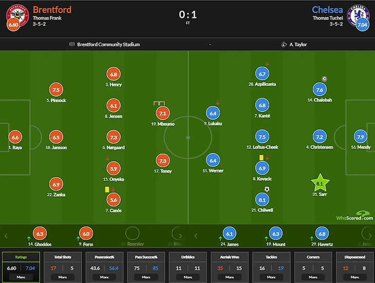 Пчелы просто уничтожали обороны Челси в полуфлангах, а Мбемо и Тауни мастерски выдергивали центр обороны на себя, оставляя целые поля для Генри и Годдоса. Кипер Челси брал и выходы 1 на 1, и удары в плотную, и успевал опередить атаку Брентфорда на выходе.