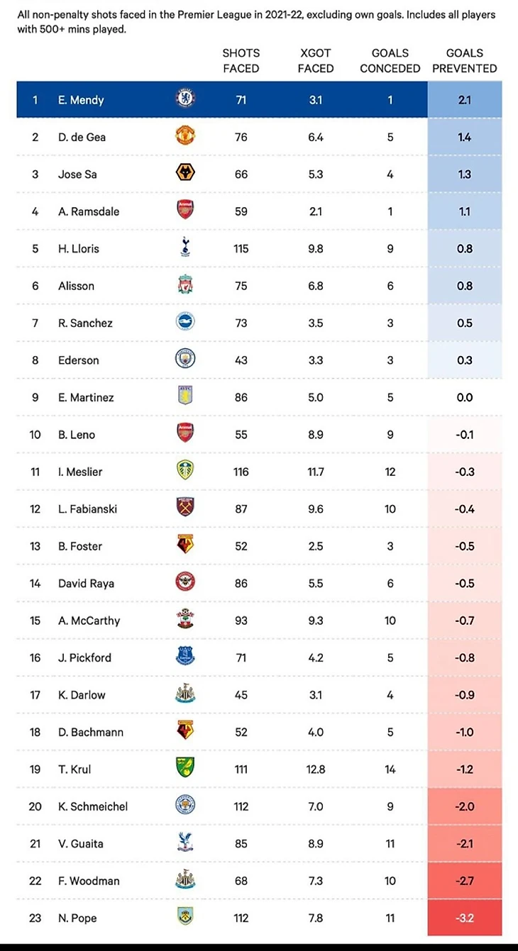 Можно посмотреть на статистику голкиперов, предложенную The Athletic по АПЛ.