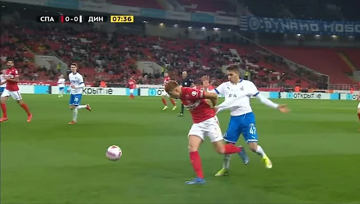 Но Максимилиано не «пускает Арсена себе за спину», защитник сам обыгрывает и уничтожает молодого динамовца. Бельгиец заодно пытается сделать то же самое с его майкой, но лучший претор России этого не замечает, а самое главное – этого не видят болельщики «Спартака», значит, это совершенно не важно, а, возможно, этого вообще и не было.