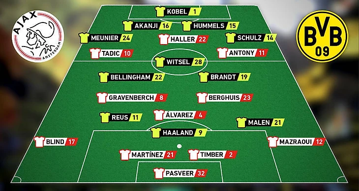 Главный тренер дортмундской «Боруссии» Марко Розе, по сравнению с последней игрой с «Майнцем», против быстрого «Аякса» выпустил тихохода Акселя Витселя (вместо Эмре Джана). В остальном же все было вполне логично, исходя из травм и готовности футболистов: Грегор Кобель, Томас Менье, Матс Хуммельс, Мануэль Аканджи, Нико Шульц, Аксель Витсель, Джуд Беллингем, Юлиан Брандт, Дониэлл Мален, Марко Ройс и Эрлинг Холанд.