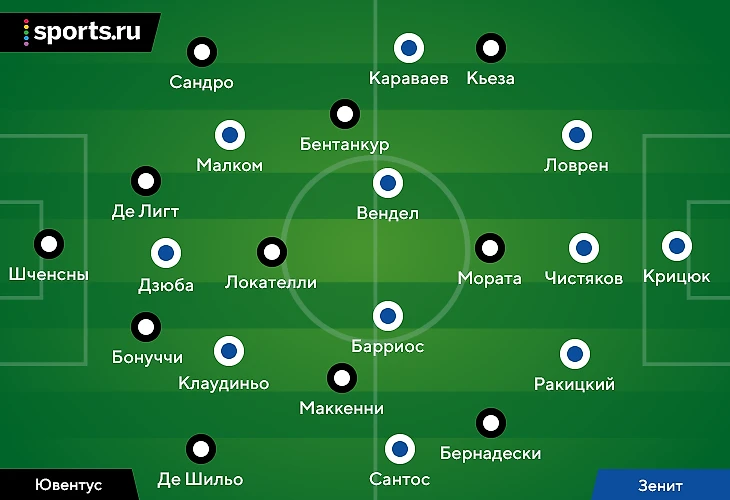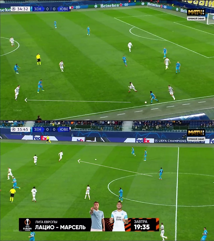 Первые 20 минут – взаимная нейтрализация. «Зенит» высоко прессинговал, а «Юве» блокировал Ракицкого и Ловрена