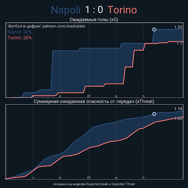 ▪ Ожидаемые голы (NPxG): 0.95 - 0.59