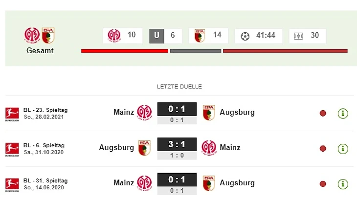 С учётом предыдущего чемпионата "Аугсбург" не может победить в десяти выездных матчах. Интересно, что последний гостевой успех пришёлся как раз на матч с "Майнцем" (28 февраля 2021 года победили 1:0)