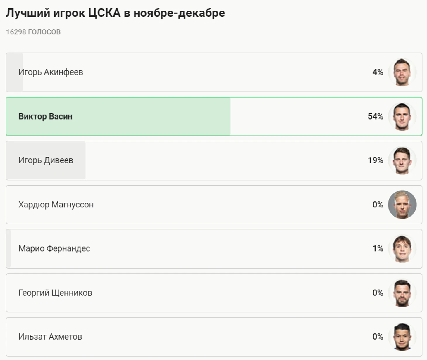 1. Голосование за звание лучшего игрока ноября-декабря. Благодаря паблику «ВГИК» лидировал Виктор Васин, но медиаслужба признала игроком месяца Влашича. Зачем проводить опрос среди болельщиков, если их голоса ничего не решают? Почему голосовать мог любой желающий, даже если у него не было аккаунта на сайте ЦСКА?