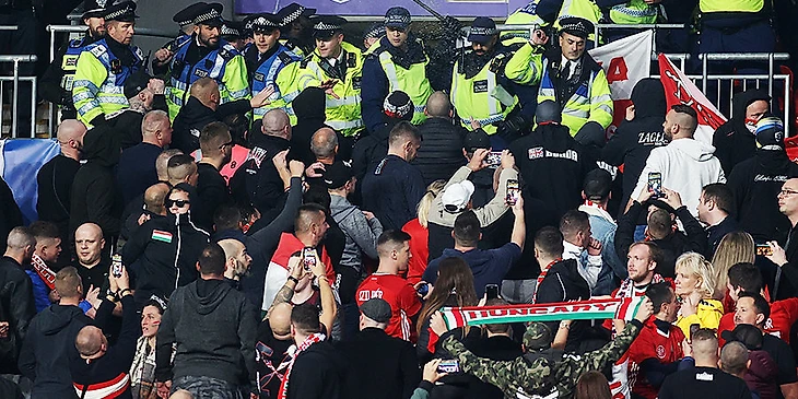 — Фанаты сборной Венгрии неоднократно освистывали акции BLM, в том числе во время матчей Евро-2020 в Будапеште. Последней подобной акцией протеста стал матч Англия-Венгрия на «Уэмбли». После того, как они освистали коленопреклонение, полиция попыталась зайти к ним на сектор и начала применять дубинки. Но крепкие венгры, подкрепленные своими друзьями-поляками, проживающими в Англии, которые пришли поддержать своих венгерских братьев, очень быстро отлупили нерадивых полицейских, выкинув их с трибуны.