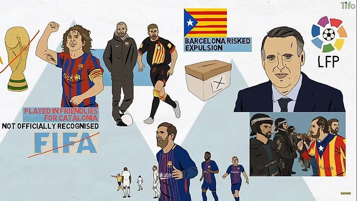 На играх Барселоны болельщики регулярно поют песни за независимость на 17 минуте, 14 секунде матча - это отсылка к осаде Барселоны 1714 года, когда город пал от Филиппа Пятого, во время войны за испанское наследство. В очередной раз возникли вопросы о том, что произойдет с испанским футболом, если Каталония обретёт независимость. В прошлом, такие игроки, как Карлес Пуйоль, Пике и Гвардиола, играли за Каталонию в товарищеских матчах, но эта команда официально не признана и не может играть в турнирах ФИФА, например - таких как чемпионат мира.