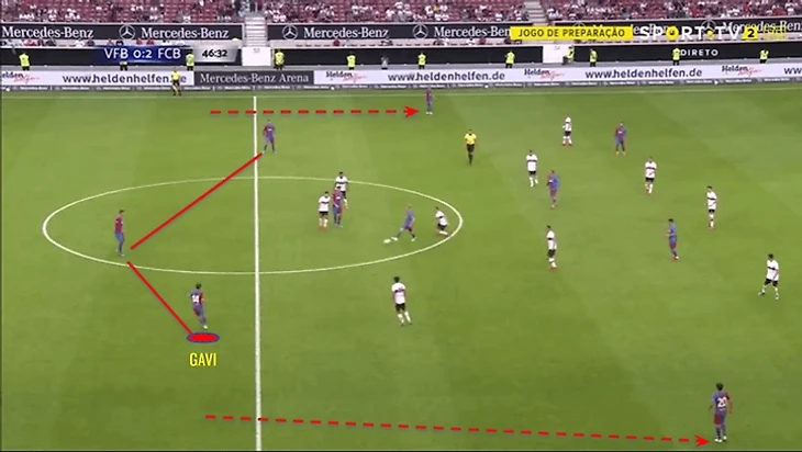 Это работает и при выходе из обороны – Гави может спуститься на позицию центрального защитника чтобы дать возможность другому защитнику для безопасного паса.