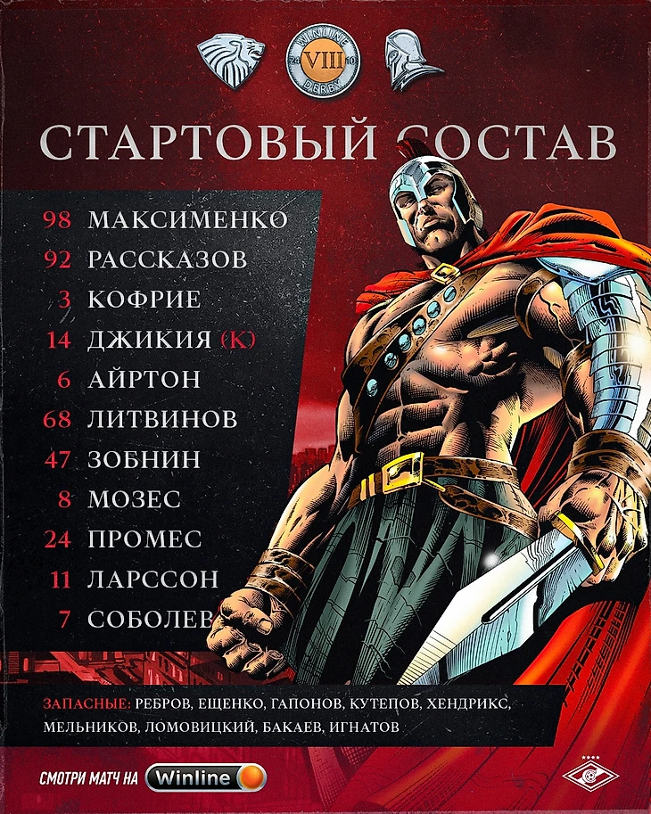 С первых минут сыграют: Максименко, Кофрие, Джикия (к), Рассказов, Айртон, Мозес, Литвинов, Зобнин, Ларссон, Промес, Соболев.