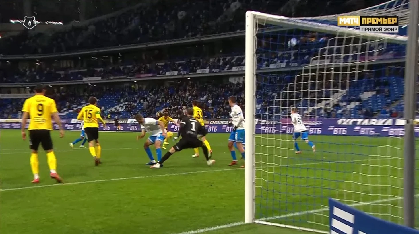 И ещё один опасный момент у Кости после отличного навеса Нжи в центр штрафной площади. В голосе похрюкивающего комментаторишки почувствовалась улыбка от того, что Тюкавин снова не попал в ворота...