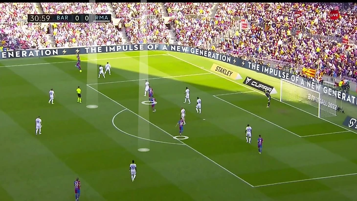 «Барса» в атаке: у «Реала» есть свободные зоны в опорной, но их даже не пытаются использовать. Френки и Гави уже в штрафной под подачу: