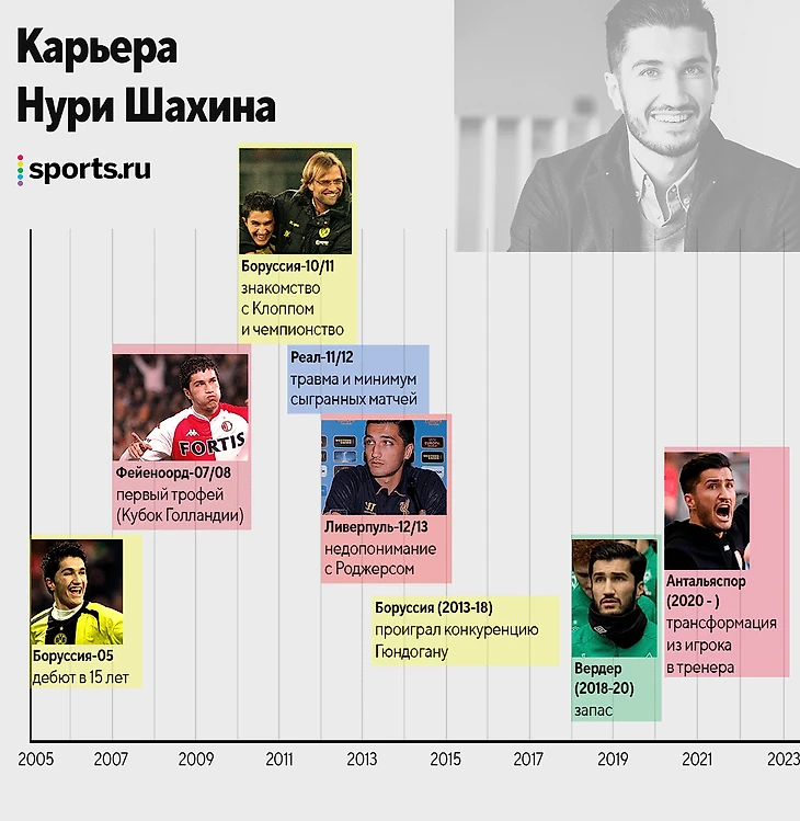 Шахин, конечно, понимает, что тренерский опыт на уровне пятой немецкой лиги – это не то, на что следует опираться в профессиональном футболе, но у Нури перед глазами отличный пример. 27 февраля 2001 года Юрген Клопп примерно так же переквалифицировался из игрока в тренера «Майнца» буквально за одну ночь. Ему тогда тоже было 33.