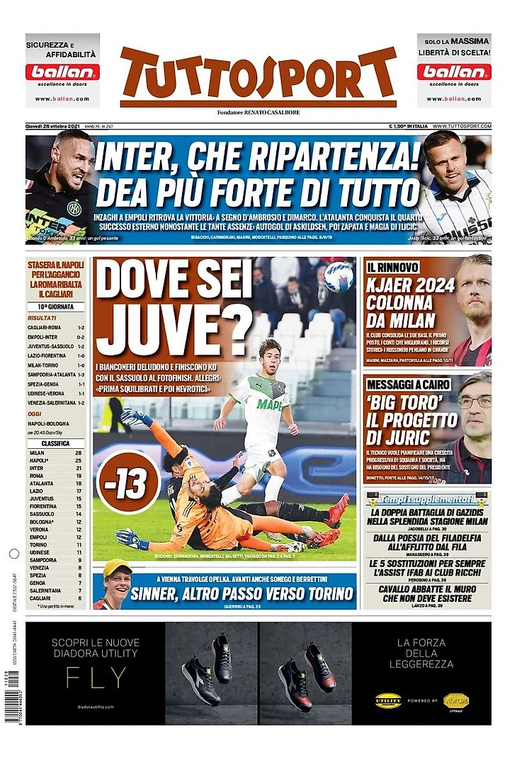 Улыбнись, «Интер». Заголовки Gazzetta, TuttoSport и Corriere за 28 октября