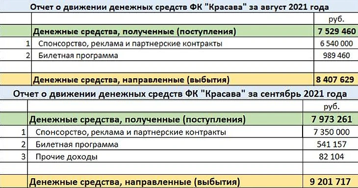 ФК «Красава» Евгения Савина обещает полную открытость, в том числе и в финансах. С момента запуска (декабрь 2020-го) мы не видели никаких цифр, но теперь клуб опубликовал финансовый отчет за август и сентябрь. Давайте разбираться.
