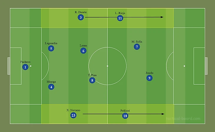 Кроме того, я бы отметил Мамаду Лума, выступающего на позиции опорного полузащитника. В команде Кальехи, где первоочерёдными являются слаженные действия без мяча, роль сенегальца многофункциональна: он не только отвечает за отборы в середине поля и поддержания общекомандной структуры, но и участвует в переходах с одной схемы на другую, выполняя широкий диапазон задач.