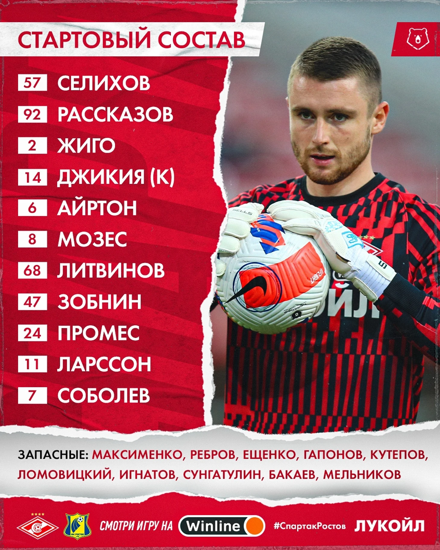 Селихов сыграет с первых минут. Состав «Спартака» в матче с «Ростовом»