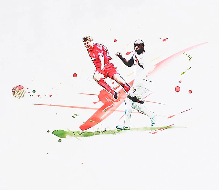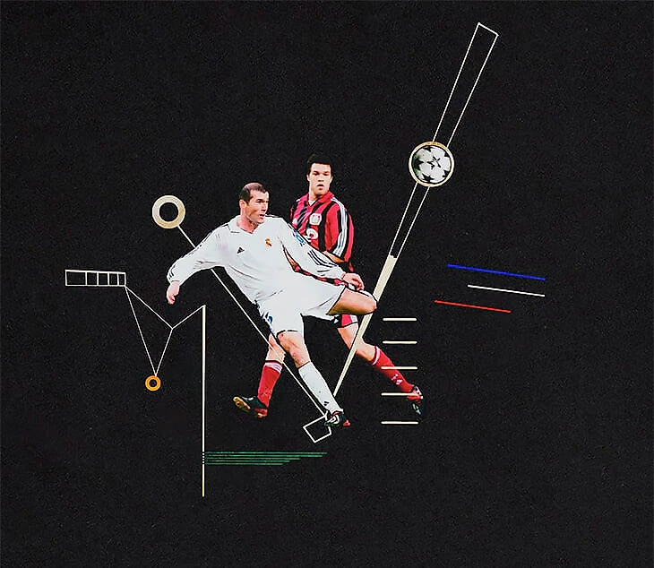 Победный гол Зидана ударом с лета в финале ЛЧ-2001/2002 против «Байера». Линии Кандинского выражают невероятную концентрацию, технику и точность одного из лучших игроков своего поколения.