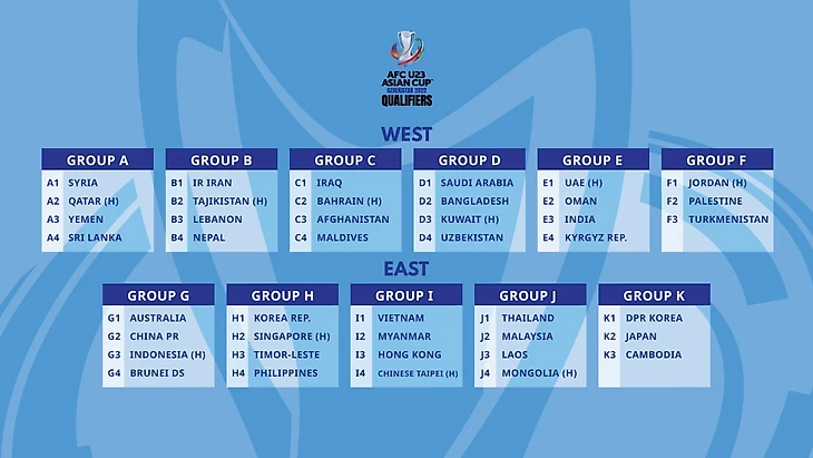 Всего в отборочном турнире 11 групп. В семи из них играют по 4 команды, в трех - по 3, и в одной - 2 (изначально и в этой группе было 4 команды, но команды Китая и Брунея буквально перед стартом квалификации отказались от участия.)