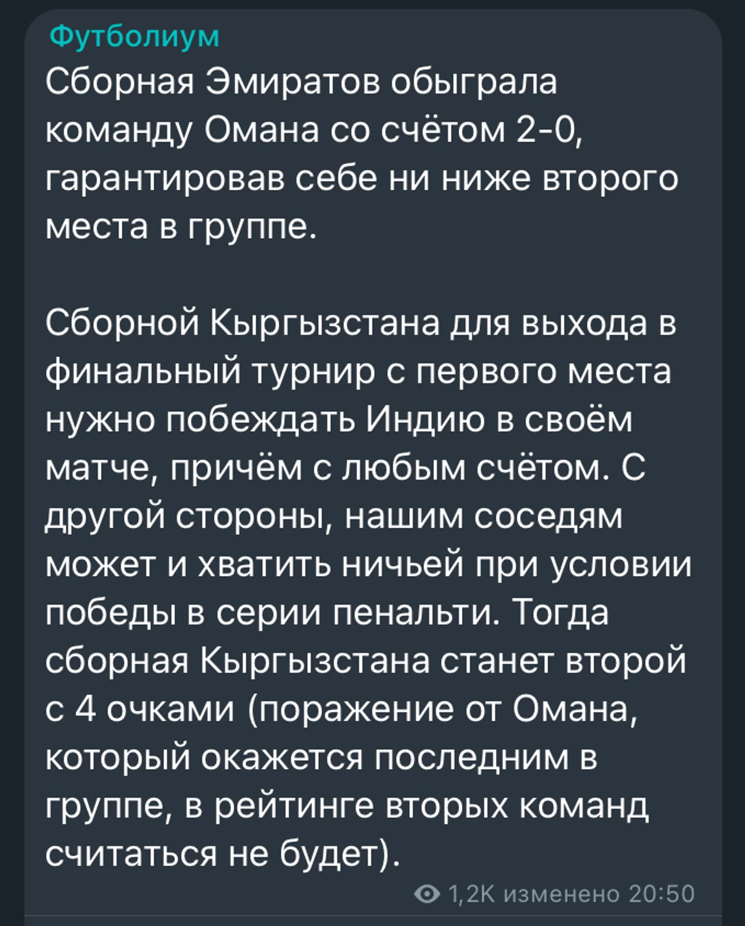 Вот пункт 7.3.2.7 в который как раз мы и угодили. Серия пенальти если у двух команд одинаковые показатели и если они играют последний матч в группе против друг друга. Черт с ним с регламентом, за несколько часов до начала нашего матча, в телеграмм канале «Футболиум» Алишер Никембаев предупреждал о возможности серии пенальти.