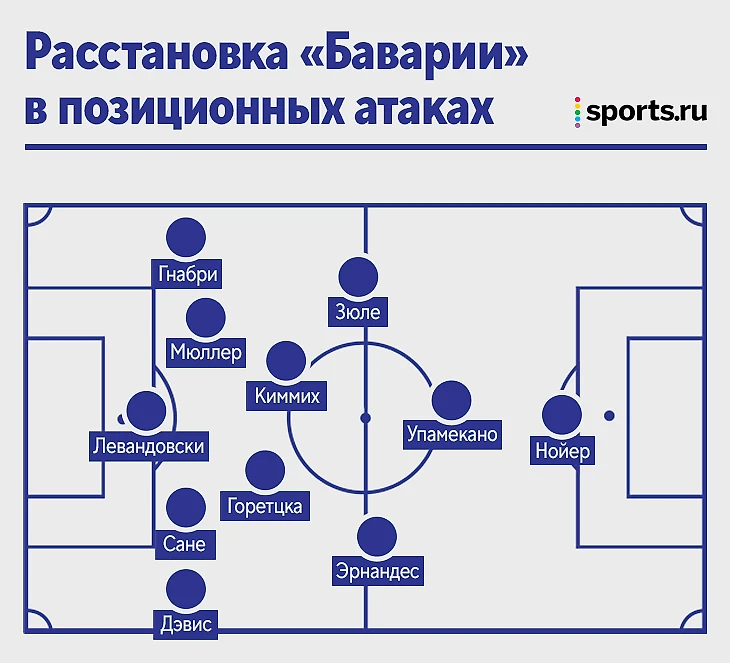 Пока более подвижный Левандовски особенно продуктивно выглядит при навесах в штрафную. При Флике Роберт всегда был главным ориентиром при подаче, на второй темп забегали Мюллер и Горетцка (мастер таких подключений).