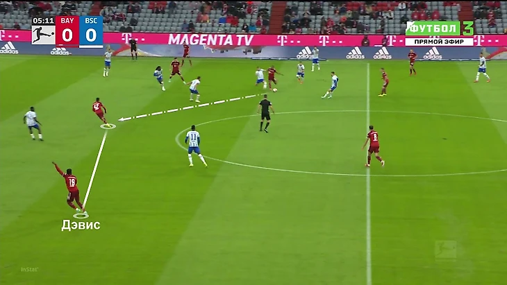 Пример из игры с «Кельном» – Гнабри обыграл трех в центре поля и транзитом через партнера довел мяч до Дэвиса.