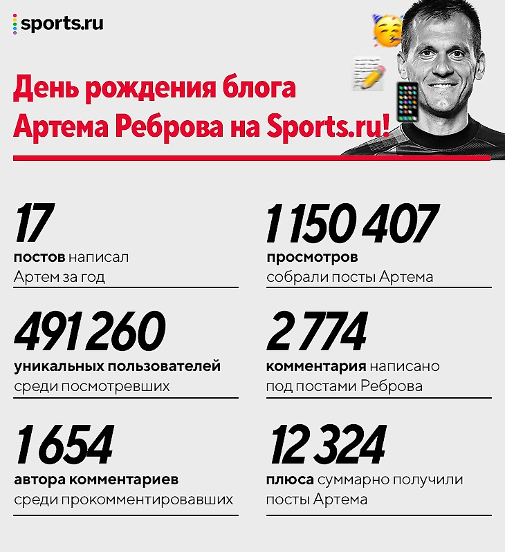 🎉 Блогу Артема Реброва – 1 год. Держите лучшие истории из его постов – про Кононова, Тедеско, Салаха и Максименко