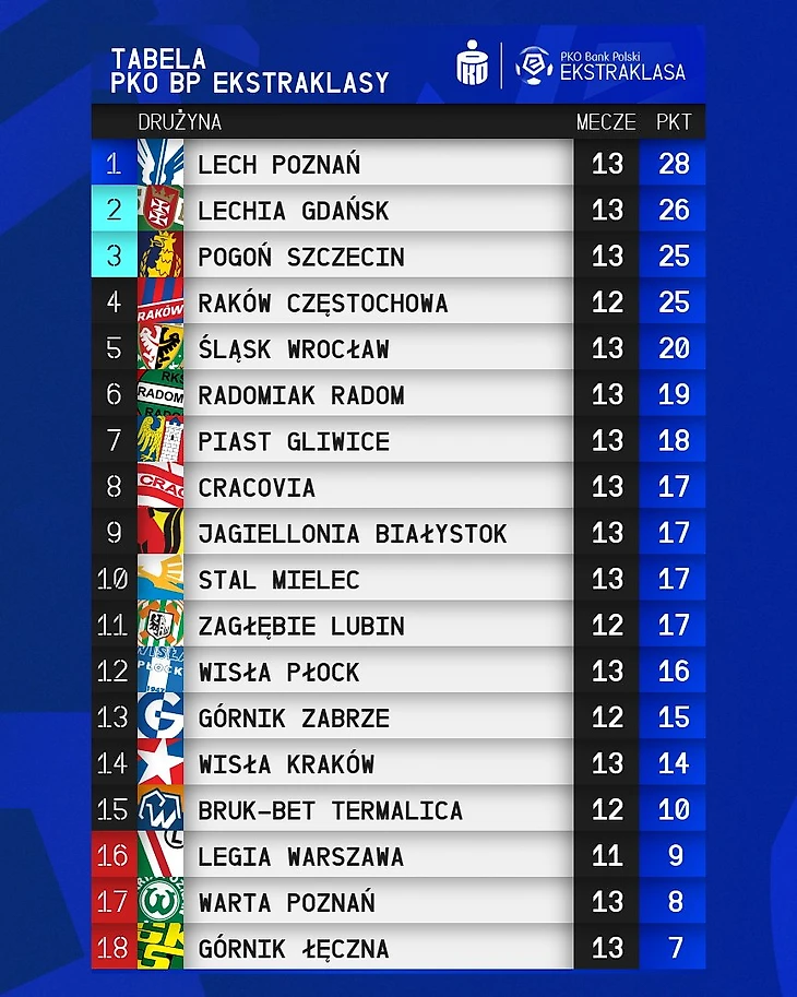 Фото: ekstraklasa.org, lechpoznan.pl, termalica.brukbet.com, legia.net