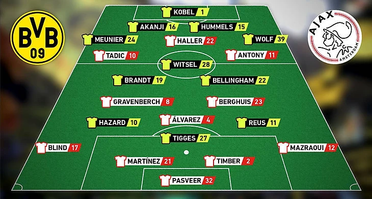 У главного тренера дортмундской «Боруссии» Марко Розе из-за эпидемии травм особого выбора не было: Грегор Кобель, Томас Менье, Матс Хуммельс, Мануэль Аканджи, Мариус Вольф, Аксель Витсель, Джуд Беллингем, Юлиан Брандт, Торган Азар, Марко Ройс и Штеффен Тиггес. Дониэлл Мален до конца еще не восстановился после инфекции и остался на скамейке запасных. Черно-желтые начали игру по схеме 4-3-3, что оказалось сюрпризом для нидерландцев.