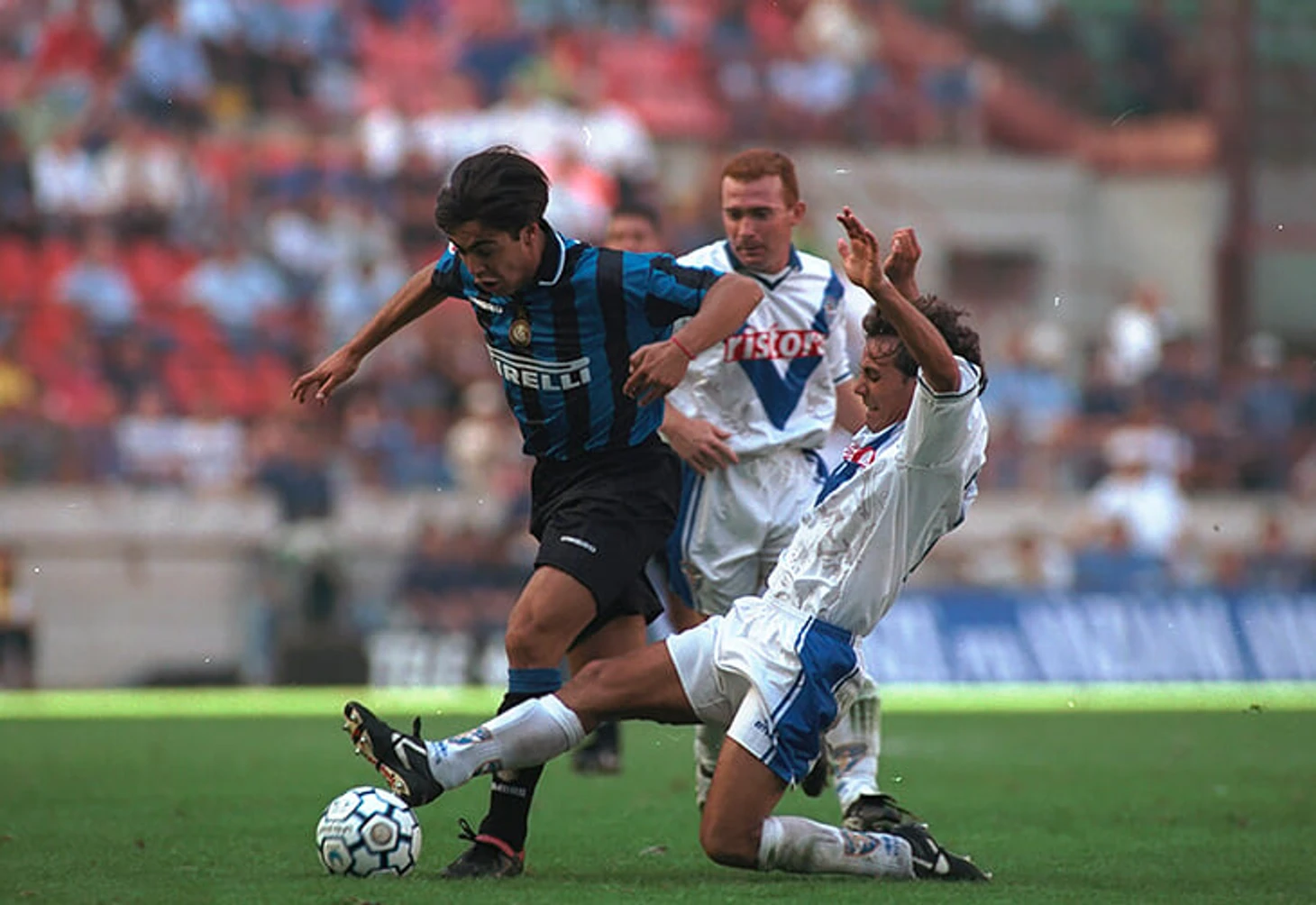 Но в России – другая оптика. Футбол наши общедоступные каналы транслировали редко, а «Интер» в 1998-м – из европейских топ-клубов – показывали чуть ли не больше всех: весной он играл со «Спартаком» в полуфинале Кубка УЕФА, а осенью – в группе Лиги чемпионов.