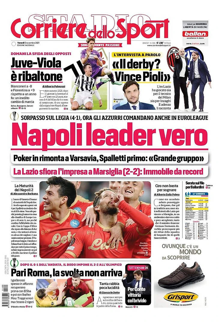 Победа «Наполи» над «Легией» в Лиге Европы, ничьи 2:2 у «Лацио» и «Ромы», а также предстоящие Миланское Дерби и матч «Юве»-«Фиорентина» – в утреннем обзоре заголовков итальянских спортивных изданий в блоге «В гостях у Кальчо».