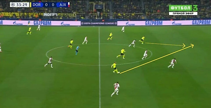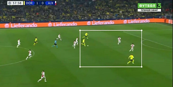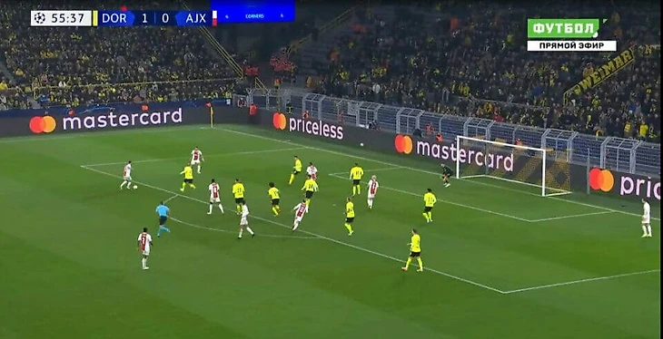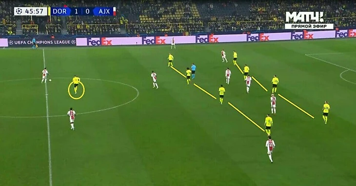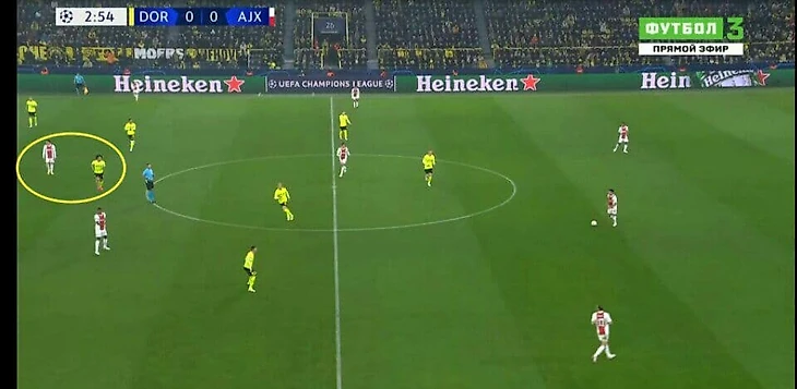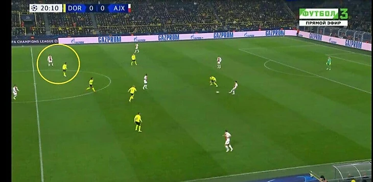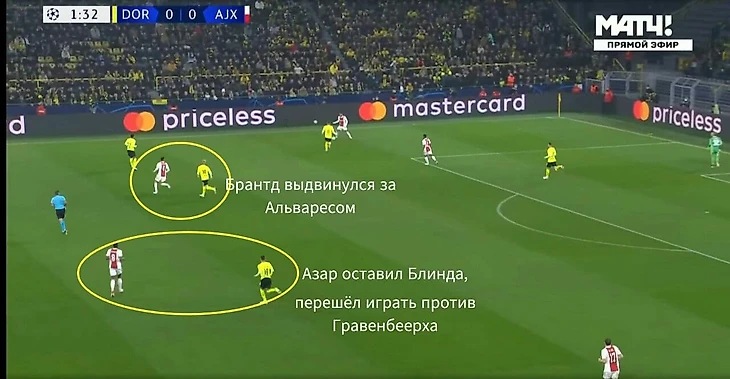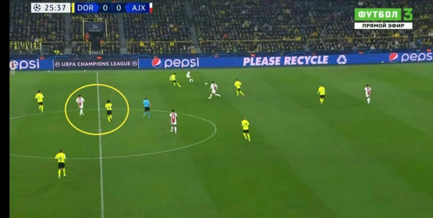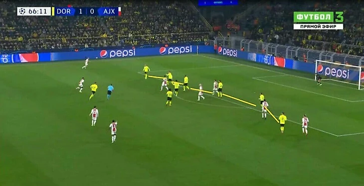 До удаления. Прессинг план «дортмундцев» отлично срабатывал. «Аякс» не мог проходить в финальную треть
