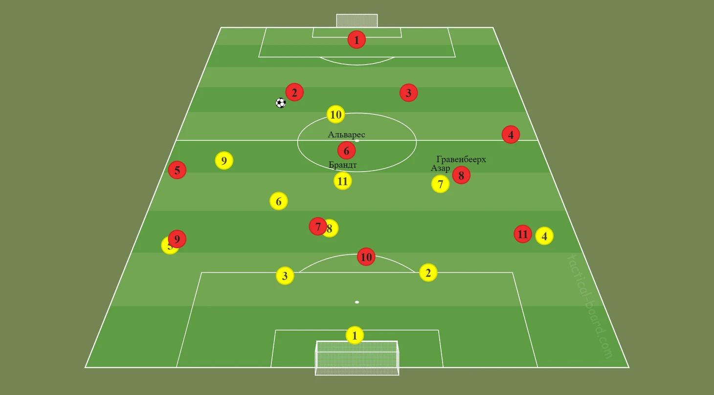 А в случае, когда за Альваресом выдвигался Витсель, то уже его должен был страховать один из центральных защитников: