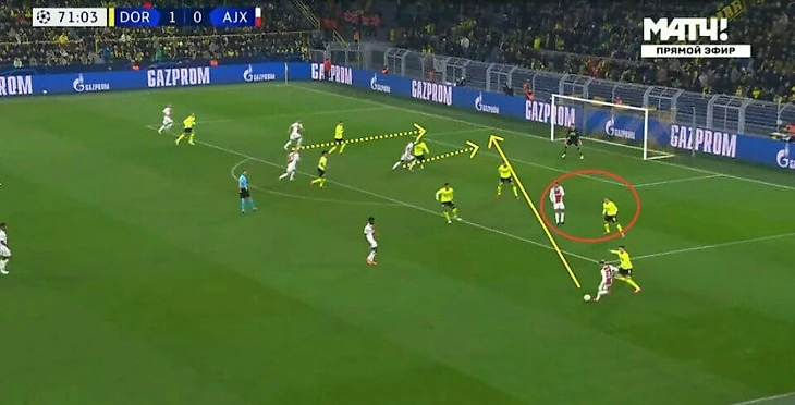 Но даже так у «Аякса» было несколько ситуаций, где они могли продвигать мяч на финальную треть, но не делали. Почему? неизвестно.