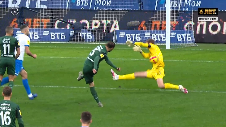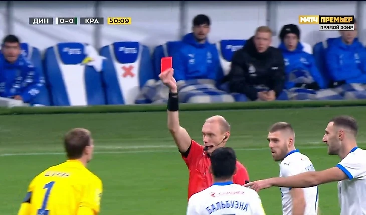 На 50-й минуте «Краснодар» воспользовался ошибкой динамовских защитников и создал момент у ворот Шунина. Вратарь спас два раза – второй уже за пределами штрафной. В динамике эпизода показалось, что Антон отбил мяч руками. Судья Владимир Москалев посчитал также и показал прямую красную.