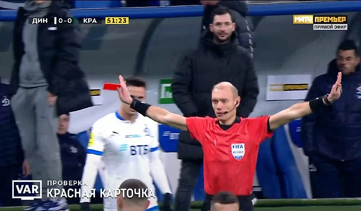 Безупречная работа с ВАР: никаких споров, быстрый просмотр эпизода – и красная Шунину отменена. А ведь могла быть чудовищная ошибка