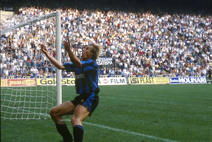 Сегодня предлагаю вам вспомнить матчи с участием немецкого атлета "Интернационале", удачно и часто очень красиво штурмовавшего оборонительные цитадели "Милана" в легендарные сезоны, когда команды доминировали в Серии А. Те годы до сих пор считаются по определению культовыми для тиффозерии "россонери" и "нерадзурри". Признаюсь, с именем этого форварда ассоциируется в первую очередь важнейший матч Лиги чемпионов УЕФА, но не дерби.