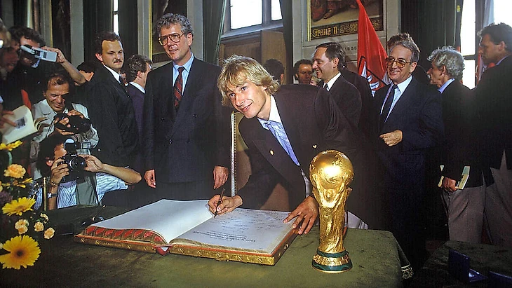 Как знать, может удаление Костакурты в борьбе с артистичным немцем на "Сан-Сиро" и дисквалификация Франко Барези на афинский финал роковые? И мы не увидели бы захватывающий поединок лучших клубов Европы того года таким, каким он вписан в историю турнира? В любом случае нападающий, родившийся летом 1964 года в Ба́ден-Вю́ртемберге, - спортивная легенда, гарантировавшая зрелище и забитые мячи.