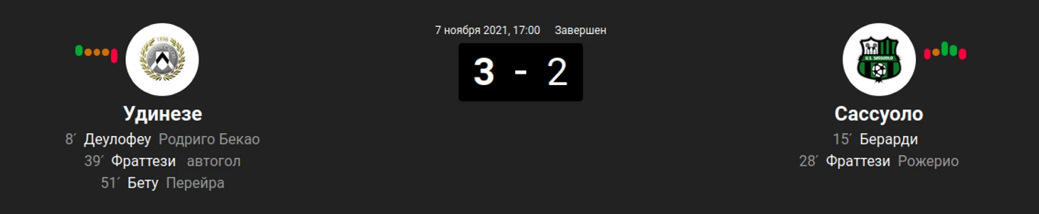 (7) «Удинезе» — «Сассуоло» (3:2)