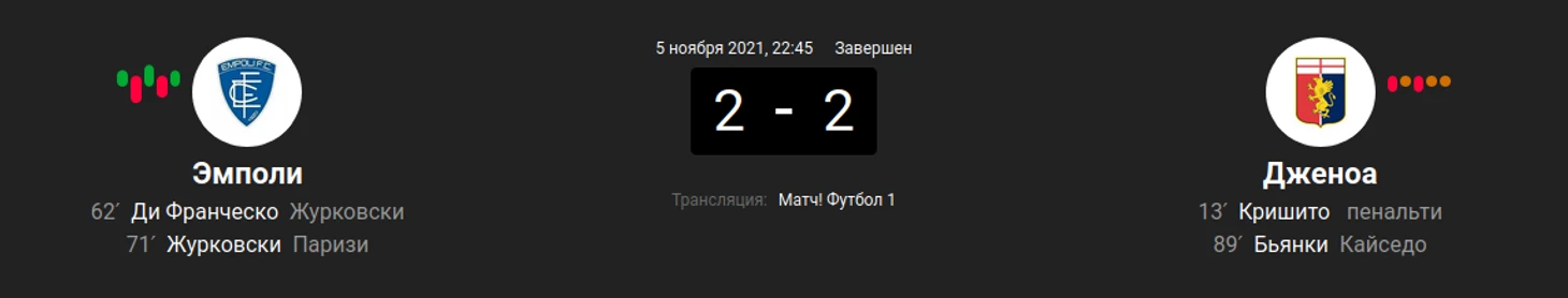 «Эмполи» на своем поле сыграл вничью с «Дженоа».