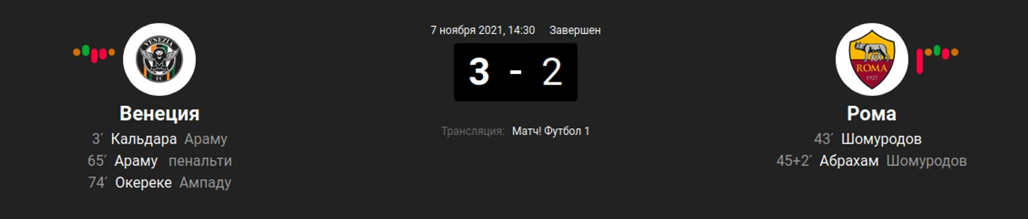 Отметим, что голом и голевой передачей за «Рому» отметился Эльдор Шомуродов. «Римляне» на шестом месте в таблице. «Венеции» продолжает везти борьбу за выживание, победа в этом туре позволила команде улучшить свое положение.