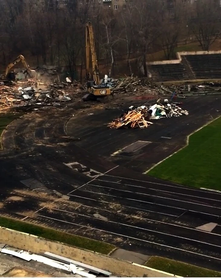 Ручейком грустных лиц стекаются москвичи на Восточную, где серым ноябрьским днём продолжилось активное уничтожение любимого горожанами стадиона «Торпедо» имени Эдуарда Стрельцова.