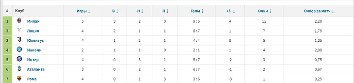 Таблица, где учитываются только матчи между топ-клубами Серии А