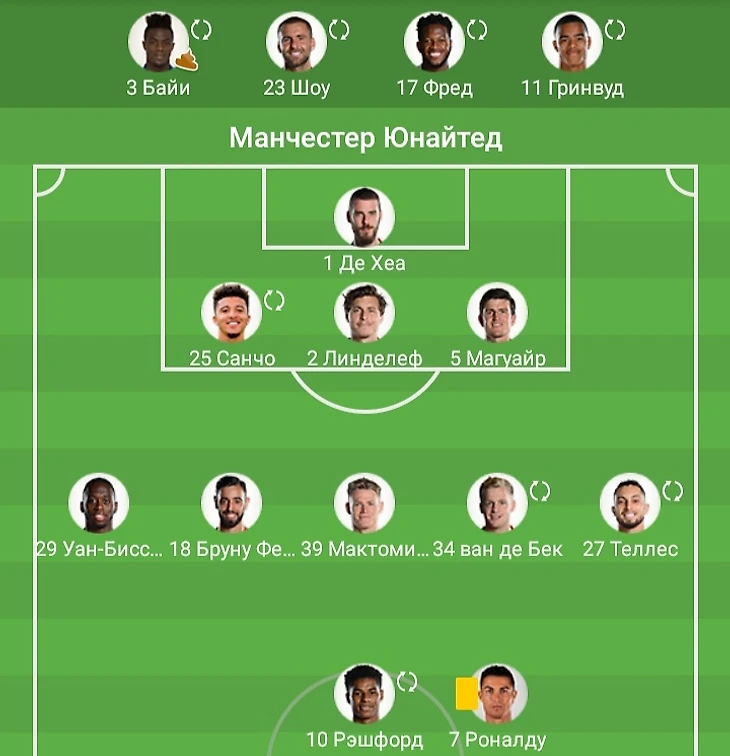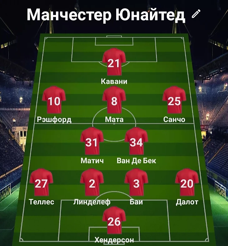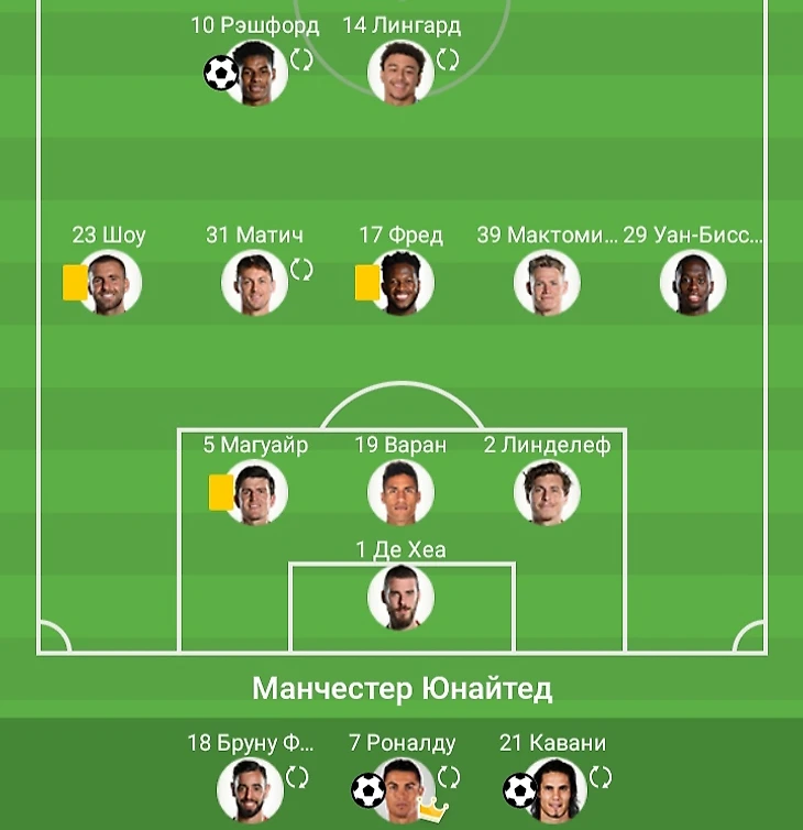 Как мы могли наблюдать в последние годы, Дьяволы используют именно эту расстановку, где ярок выраженные Гринвуд и Погба играют роль забегающих и подающих игроков, а Криштиану стоит в центре, завершая атаки. Естественно, под ним стоит Бруно, на котором лежит весь центр поля, а опорную зону заполняют Фред и МакТомини как пара опорников. Также ну очень много внимания уделяют крайним защитникам, коими являются Шоу и Ван-Биссака. Таким образом, глядя просто на расстановку, можно понять, что клуб опирается в основном на контратаки и довольно мало владеет мячом (о чём свидетельствует гибкая расстановка и массированная опорная зона, мало шевелящаяся на игре), особое внимание уделяется Криштиану на острие и быстрым игрокам на флангах. Что же касается ротации, то там всё просто. Игроки элементарно сменяют друг друга на этих же позициях, и, если закрыть глаза на класс игроков, с этим проблем у команды Оле нет. Ниже перед вами представлен полностью замененный состав: