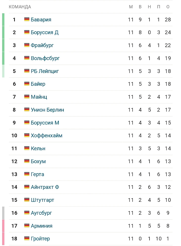 Глупо было бы ожидать, что Бавария и Боруссия Дортмунд не будут в числе лидеров чемпионата по истечении трети сезона. Но тот факт, что за зону ЛЧ зацепится Фрайбург, предугадать было крайне трудно.