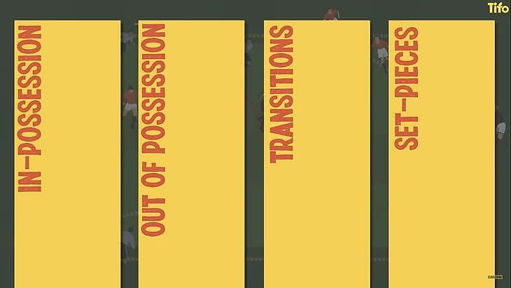 Футбол можно расчленить на множество элементов. Каждая команда всегда будет сталкиваться с определёнными этапами игры. Этапы, или фазы игры, такие как: игра с мячом, игра без мяча, переходные стадии и стандартные положения.